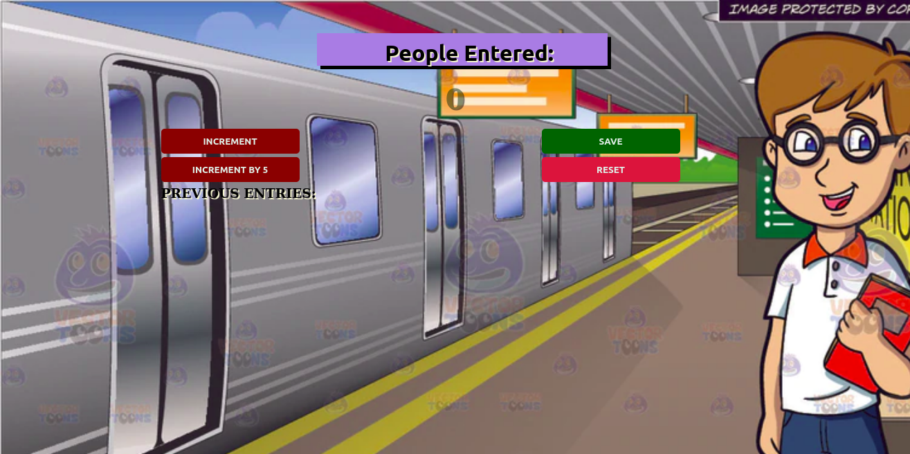 A simple dynamic web page created which showcases basic Counter application for Passengers boarding the train with interactive view using JavaScript!